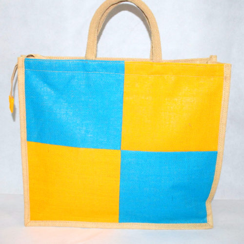 Material: Jute; Color: Yellow Dimensions(WxH):44cm x 36 cm Strap Type: Double Handle; Closure Type: zip Number Of Pockets: 2 Occasion: Casual Care Instructions: Hand Wash Only And Do Not Expose To Extreme Heat